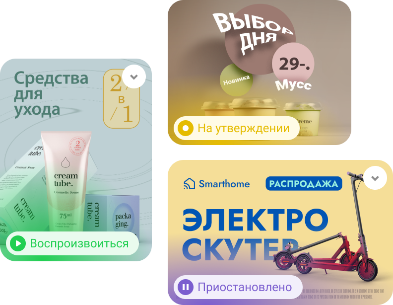 Цифровую рекламу трудно не заметить. Размещайте рекламу на необходимых экранах с заданным таргетингом.